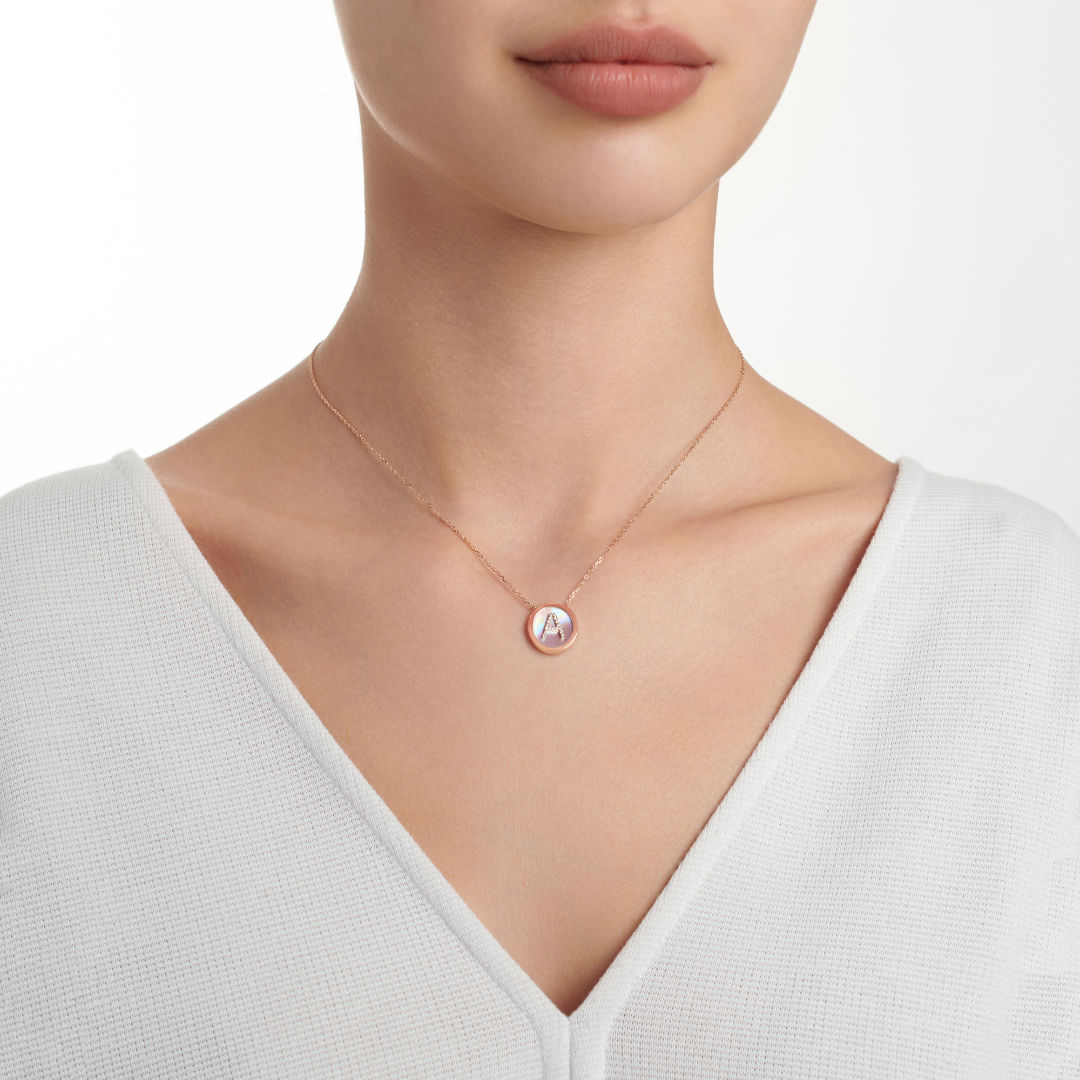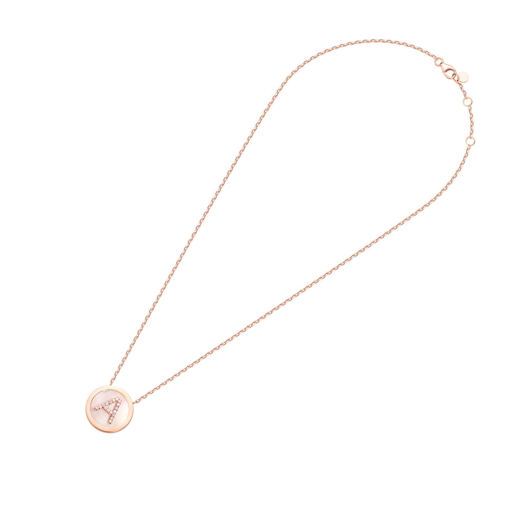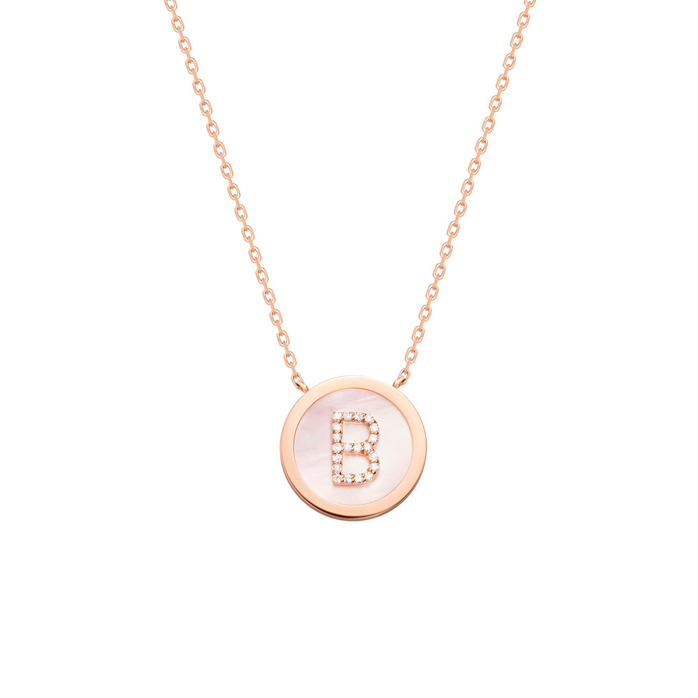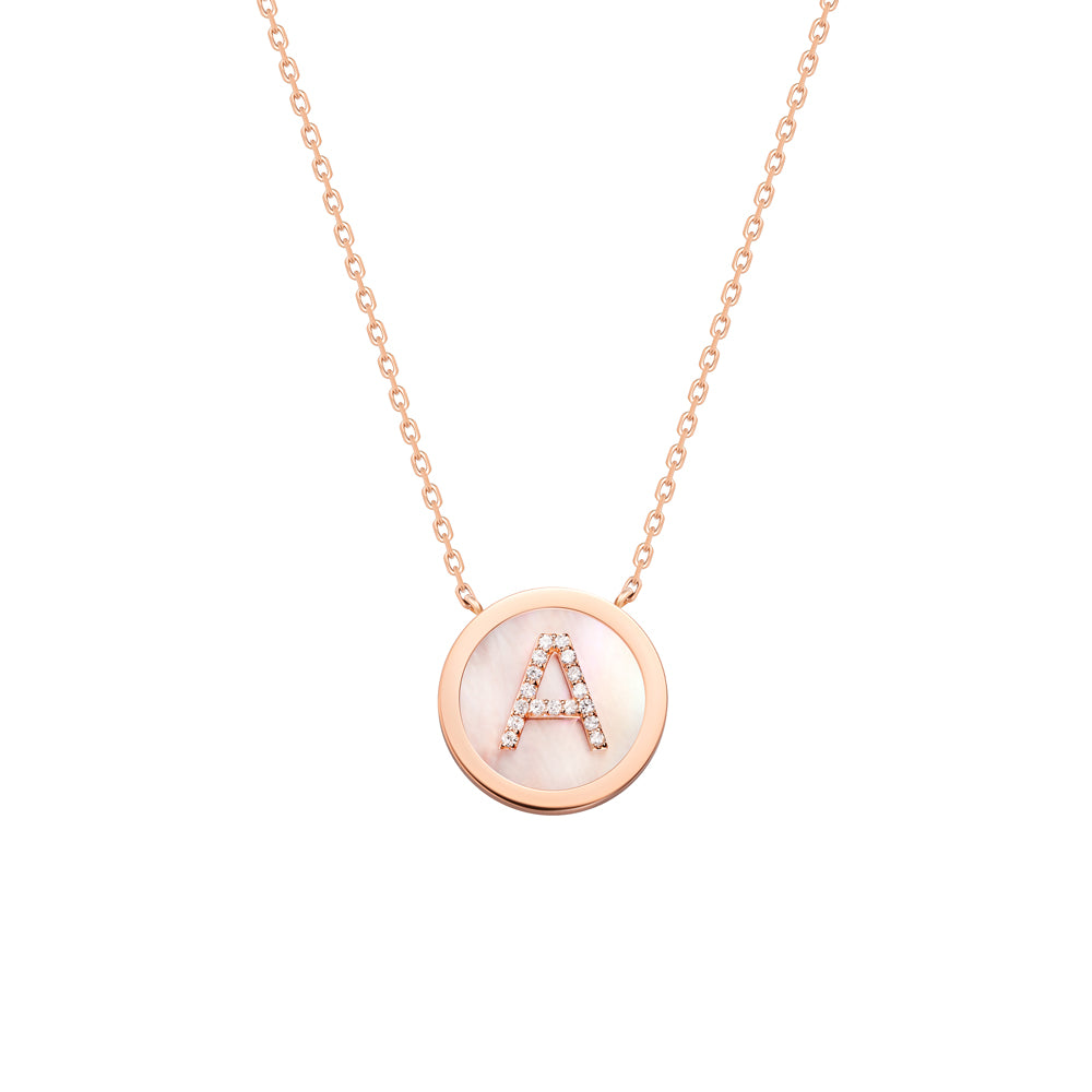 Paula's Alphabets Diamond Collection is a unique and sophisticated line of necklaces that feature mother-of-pearl alphabet stones set in a delicate gold frame. Each necklace is a one-of-a-kind piece, perfect for personalizing your look or giving as a meaningful gift.